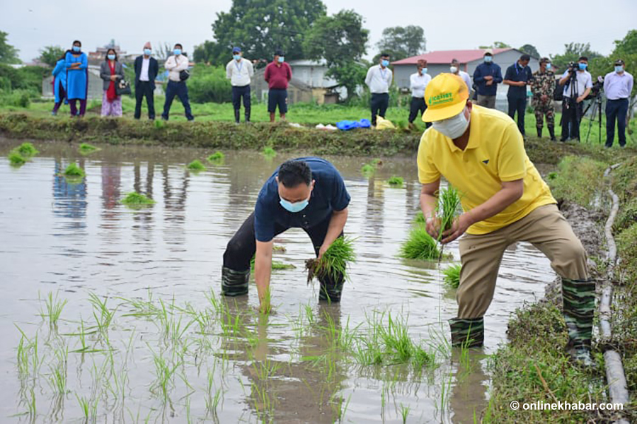 कृषि तथा पशुपन्छी विकासमन्त्री वसन्तकुमार नेम्वाङको उपस्थितिमा धान रोपिएको हो । कार्यक्रममा मन्त्री नेम्वाङले पनि नार्क परिसरको जग्गामा मेशिन र आफैँले धान रोपेका छन् ।