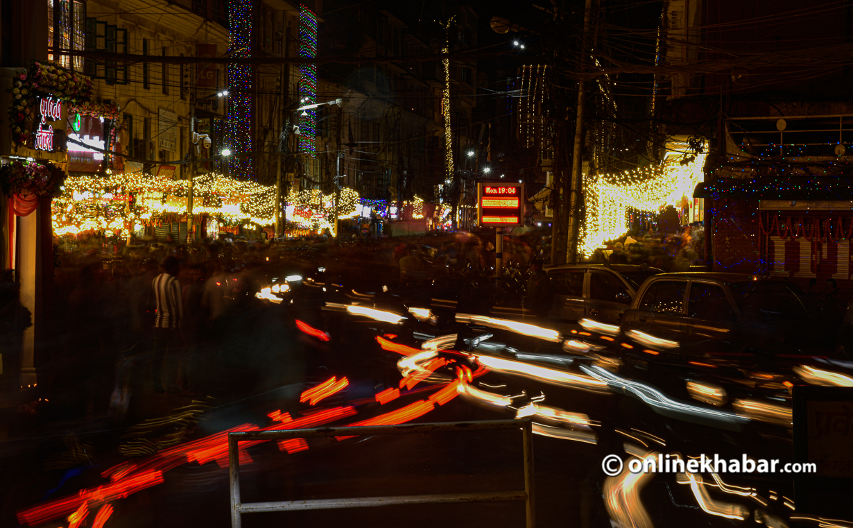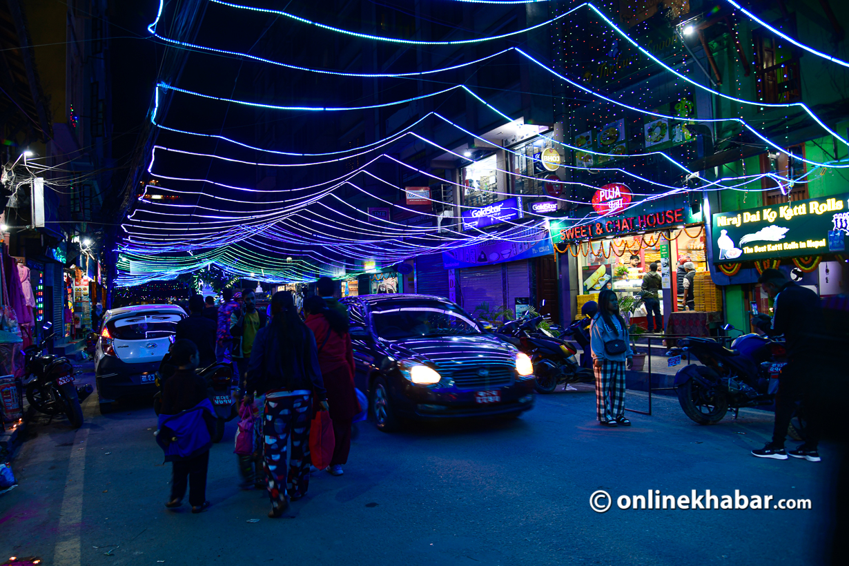 काठमाडौंमा सर्वसाधारणले घरलाई झिलिमिली बत्तीले छोपेका छन् । व्यापारिक मलहरु पनि बत्तीले सजाइएको छ । काठमाडौंका कतिपय सडकमा समेत झिलिमिली बत्ती राखेर उज्यालो पारिएको छ ।